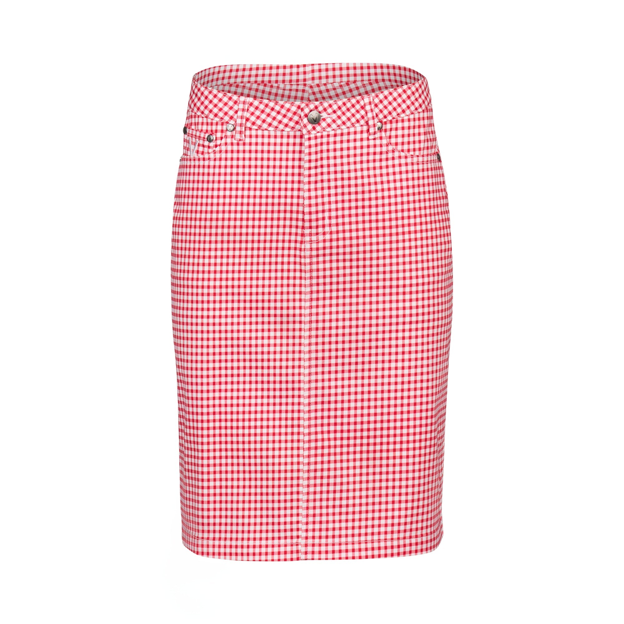 Vassalli Printed Lightweight Skirt with Centre Back Vent - Red Gingham