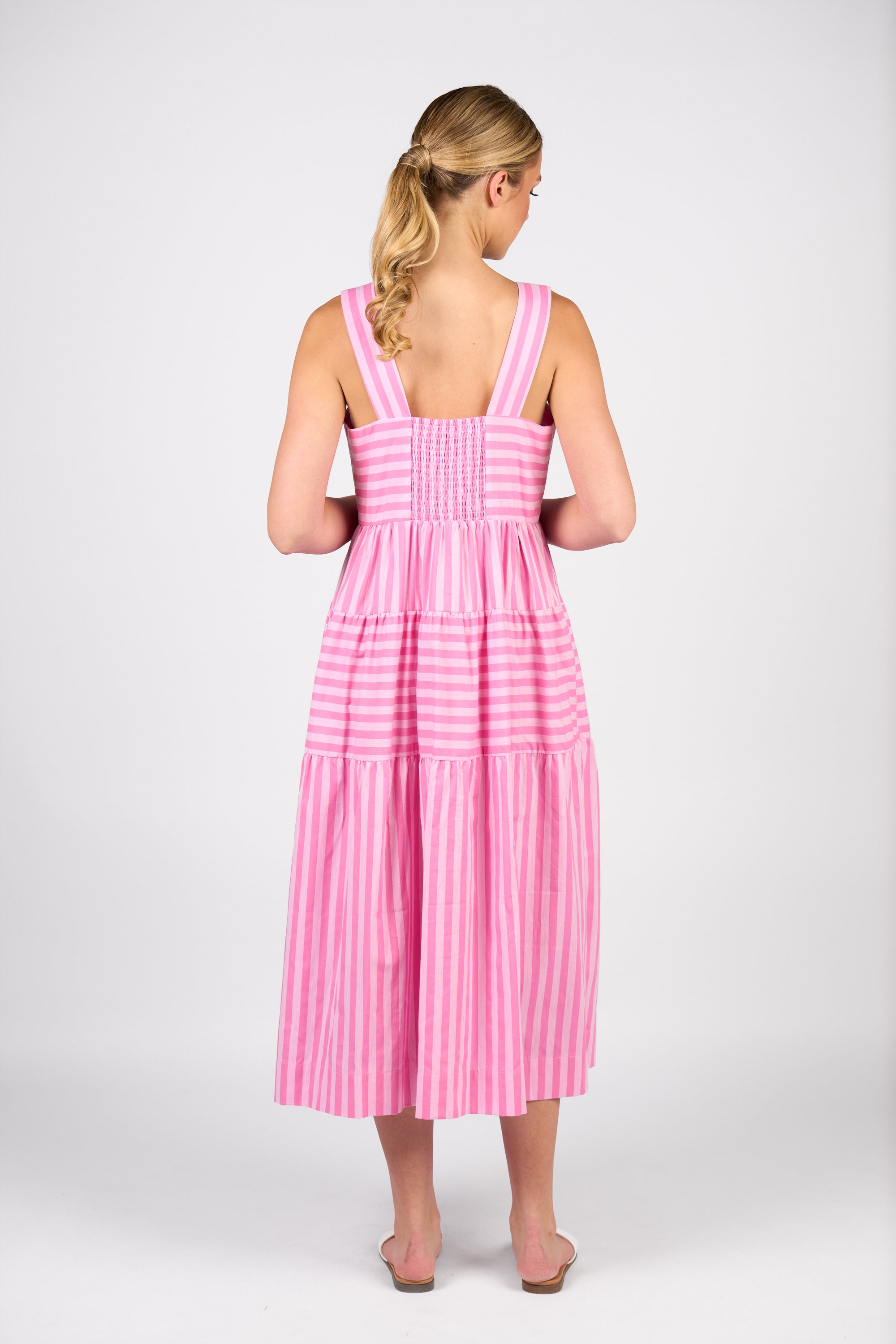Vassalli Sleeveless Tiered Dress- Pink Stripe