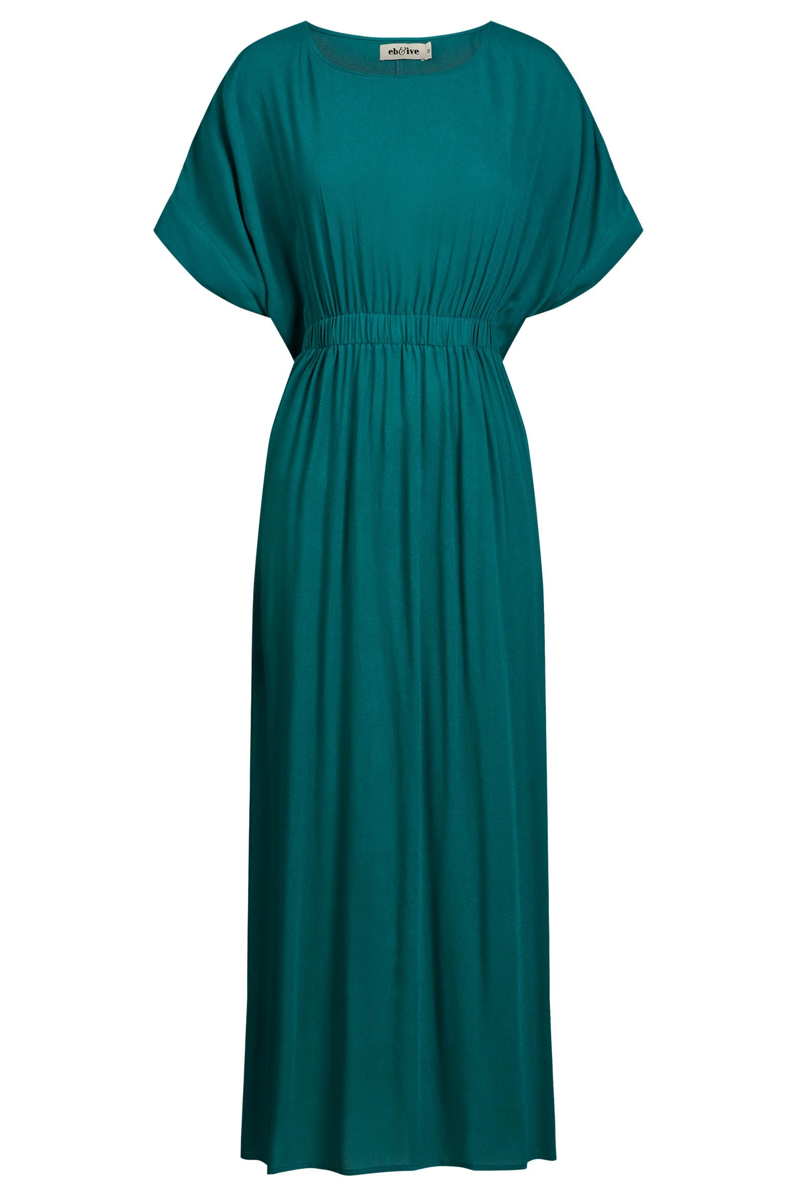 Crafted from a soft, flowing 100% viscose fabric, this dress drapes beautifully and feels amazing against the skin. It features a classic round neckline, a flattering elasticated waist and back detail to define your shape, and practical, functional pockets. The relaxed fit falls to a midi length, creating a graceful and feminine silhouette.
