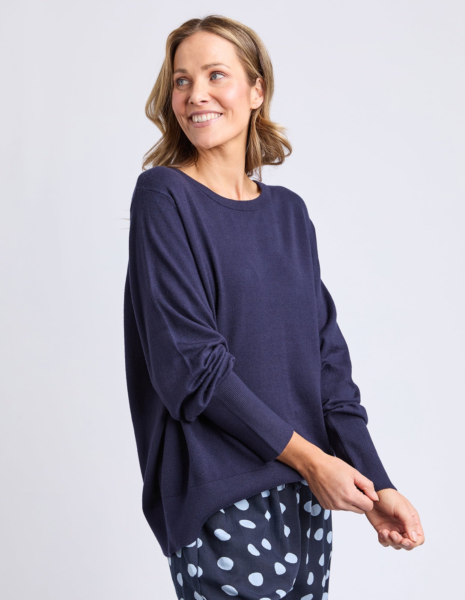 Elm Sunny Long Sleeve Knit Top - Classic Navy