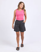 Your perfect basic, the Iris Tank is made from soft rib fabric with a straight hem and classic round neckline. Simple, comfy, and ready to be your everyday go-to for layering or wearing solo.