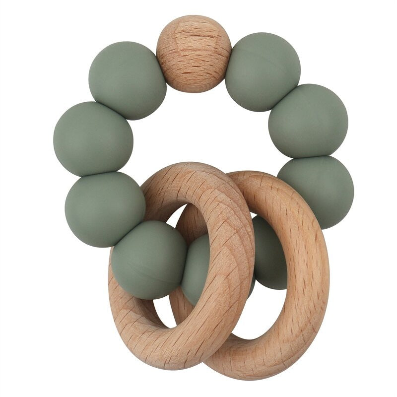 Our quality silicone beads Wooden Ring Rattle Teether helps to develop eye hand coordination and fine motor skills.