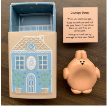 Comes packaged in a match box house with a bed design inside. Includes support message.