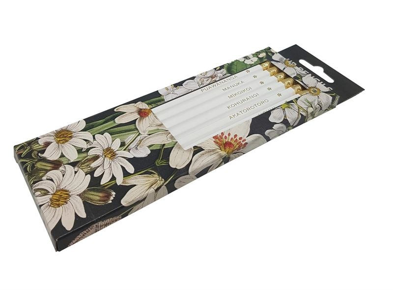 Live Wires - 6 Pkt Pencils - White NZ Flowers