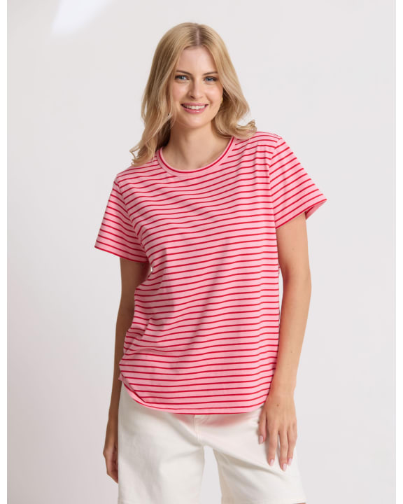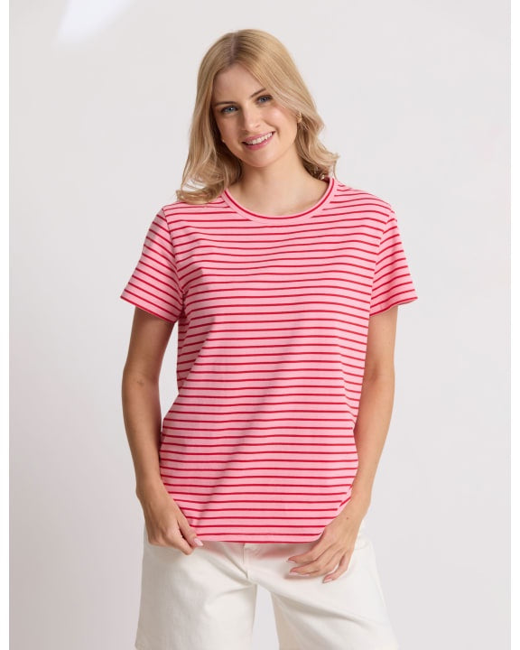 Meet your new wardrobe hero: the Stella + Gemma Classic Stripe Tee in a vibrant Pink with Red Stripe colourway. This timeless staple takes the beloved horizontal stripe and updates it with bright, cheerful colours that pop! Perfect for endless styling possibilities, this tee brings a touch of classic French-inspired chic to your everyday rotation.
