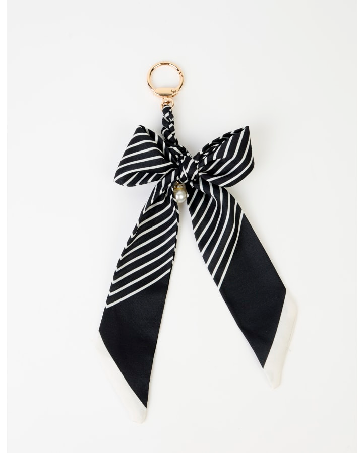 Stella + Gemma Keychain Bow Black & White Stripe