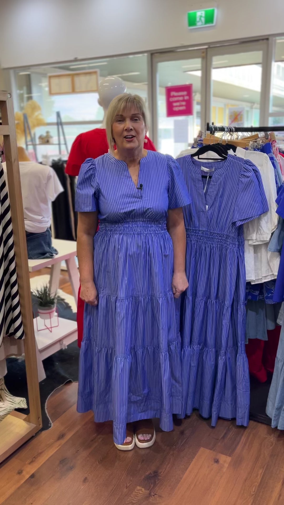 Crafted from 100% breathable cotton, this dress feels light and airy against your skin, perfect for warm days and balmy evenings. The timeless blue and white pinstripe pattern offers a sophisticated yet relaxed aesthetic.