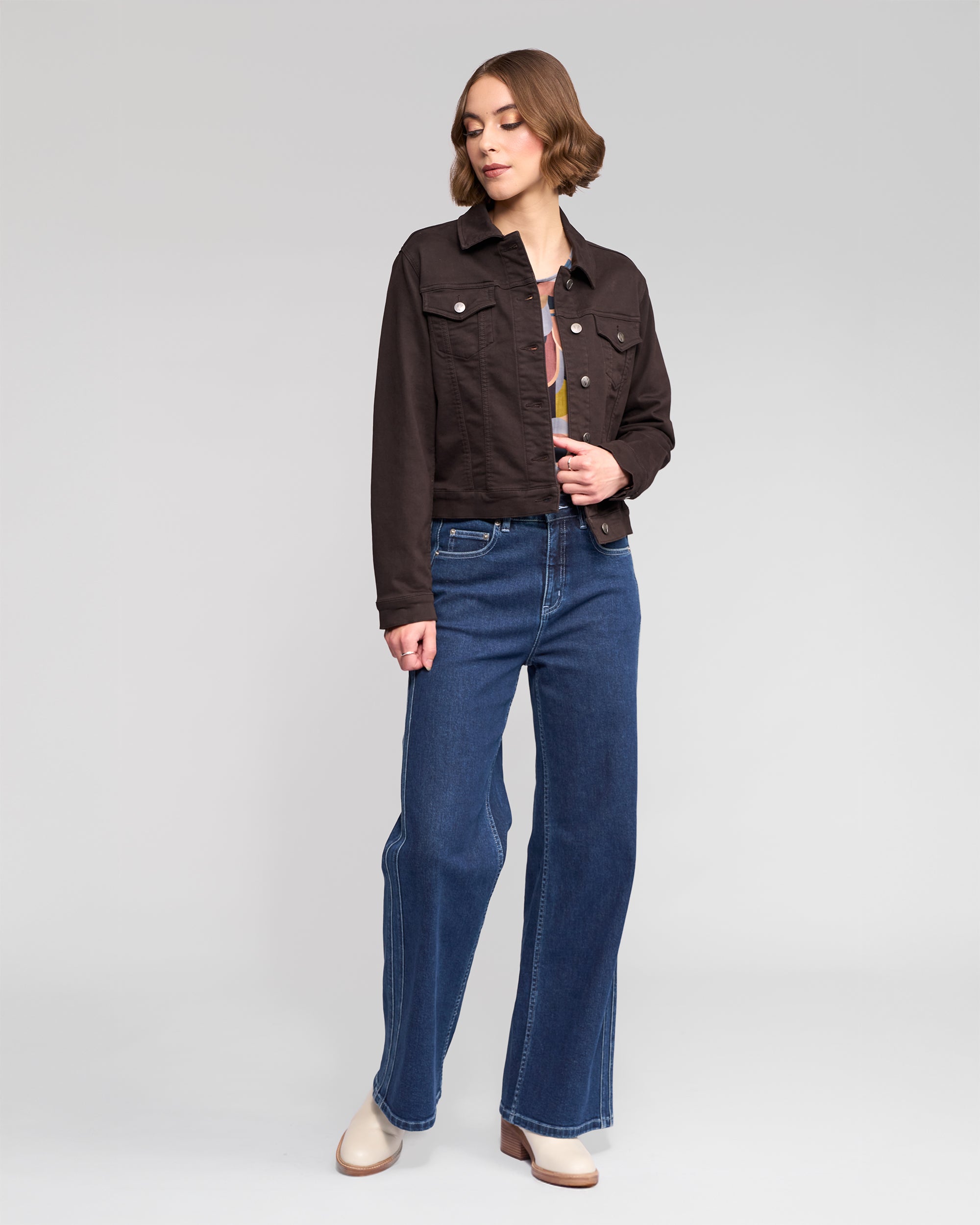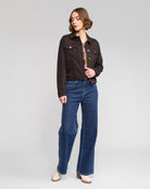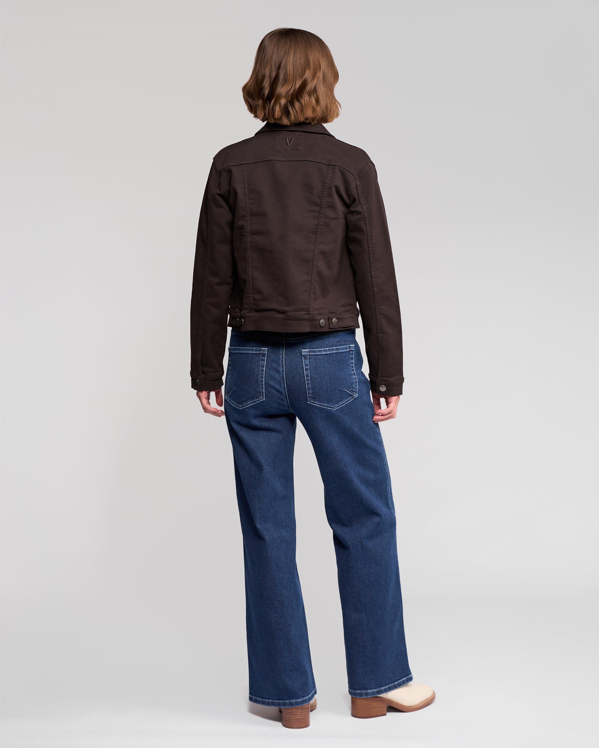 A classic button-up jacket made from our soft, velvety moleskin-inspired stretch fabric in a rich chocolate brown. Designed in a relaxed fit, this style features metal ‘V’ logo jean buttons, chest pockets, and adjustable tabs at the back waist for versatile shaping. Finished with ‘V’ embroidery at the centre back neck.